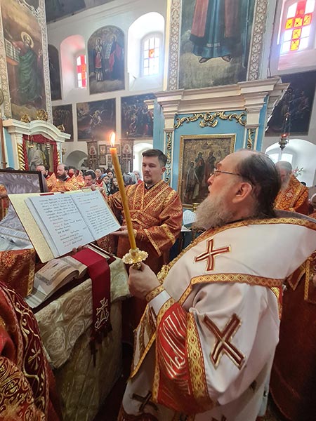 Гроб с телом почившего иерарха был обнесен вокруг Михаило-Архангельского собора под пение ирмосов святой Пасхи.