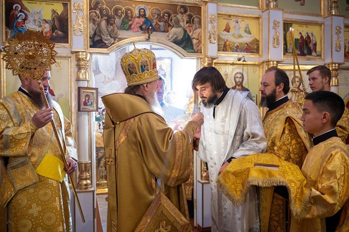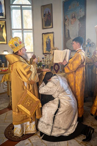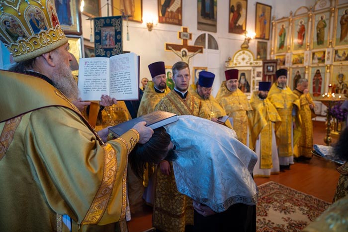 После евхаристического канона митрополит Александр совершил диаконскую хиротонию студента Алма-Атинской духовной семинарии чтеца Алексия Федорченко.