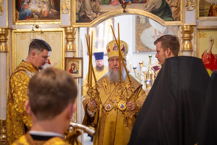 Митрополит Астанайский и Казахстанский Александр возглавил Божественную Литургию в храме в честь Казанской иконы Божией Матери в городе Тобыл, находящемся на противоположном от Костаная берегу реки Тобол.