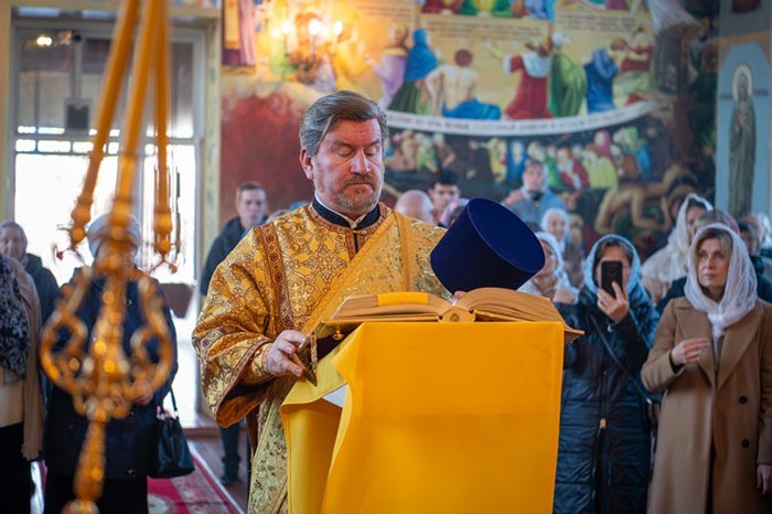 По запричастном стихе протоиерей Виталий Клеба огласил послание митрополита Астанайского и Казахстанского Александра по случаю 15-летия Костанайской епархии.