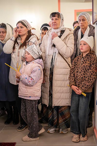 За чином освящения молились: секретарь Костанайской епархии иеромонах Геннадий (Бурдюжа), благочинный Лисаковского церковного округа, настоятель Покровского храма протоиерей Олег Калмыков, руководитель личного секретариата митрополита иеромонах Прохор (Ендовицкий), благочинный Костанайского церковного округа, настоятель храма Казанской Божией Матери города Тобыл иерей Андрей Крутин; клирики Костанайской епархий и прихожане Покровской церкви.