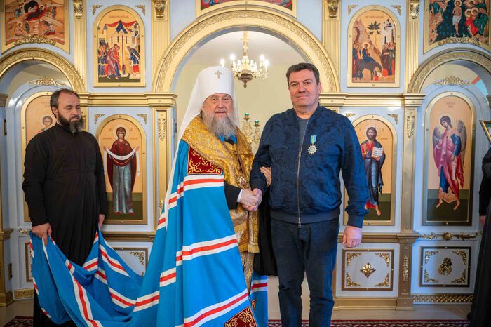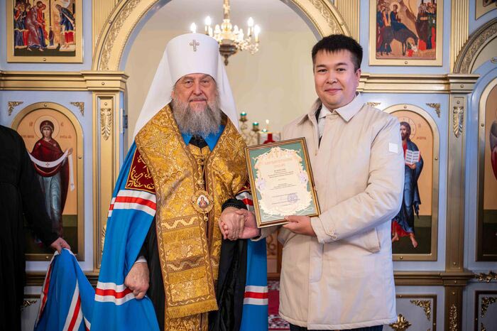 Во внимание к трудам по строительству и благоукрашению храма архипастырь удостоил благотворителей высоких наград Казахстанского Митрополичьего округа.