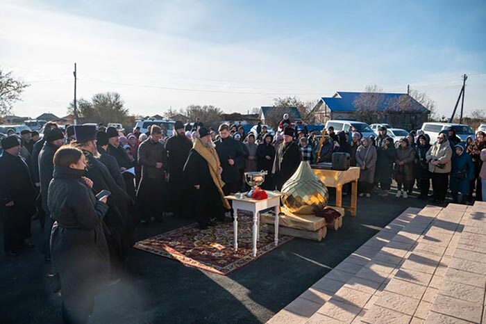 Митрополит Астанайский и Казахстанский Александр совершил освящение креста и купола строящегося Никольского храма в селе Владимировка