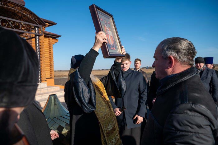 На чине освящения присутствовали: аким Владимирского сельского округа А.К. Жунусова; ктитор Никольского храма Г.Н. Убей-Волк; ответственные за возведение храма специалисты.