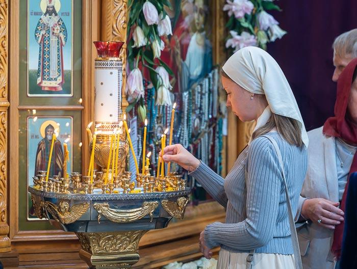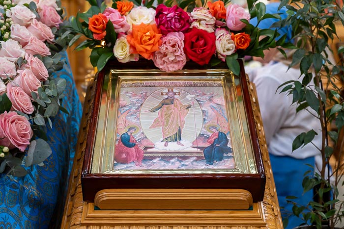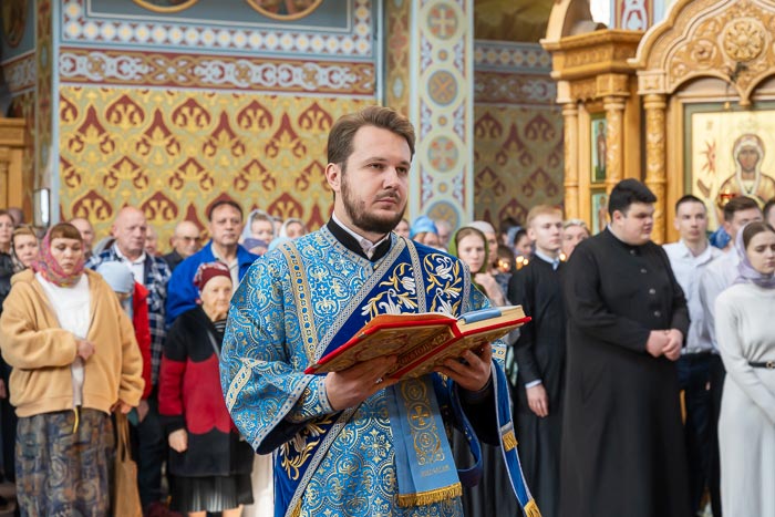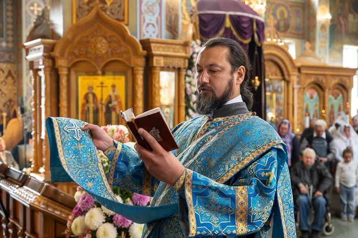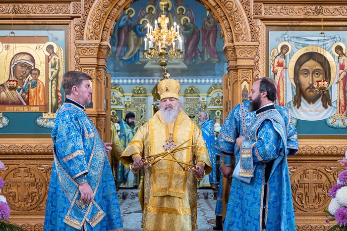 Литургия завершилась славлением Пресвятой Богородице перед ковчегом с Ее честным Поясом и Иверским образом Царицы Небесной, а также литией у гробницы митрополита Иосифа (Чернова), после чего митрополит Александр поздравил епископов, матушек игумений, духовенство и прихожан с престольным праздником и обратился к верующим со словами архипастырской проповеди.