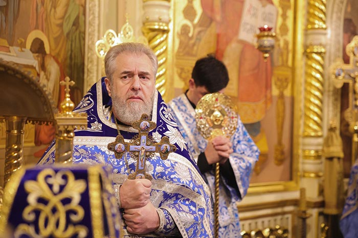 Его Высокопреосвященству сослужили: проректор Алма-Атинской духовной семинарии, кандидат богословия, доктор медицинских наук, профессор игумен Агафангел (Гагуа); ключарь храма святых мучениц Веры, Надежды, Любови и матери их Софии иеромонах Антоний (Дробязко), клирики подворья, диаконский чин возглавил протодиакон Сергий Куликов.