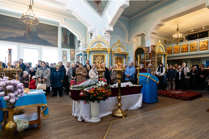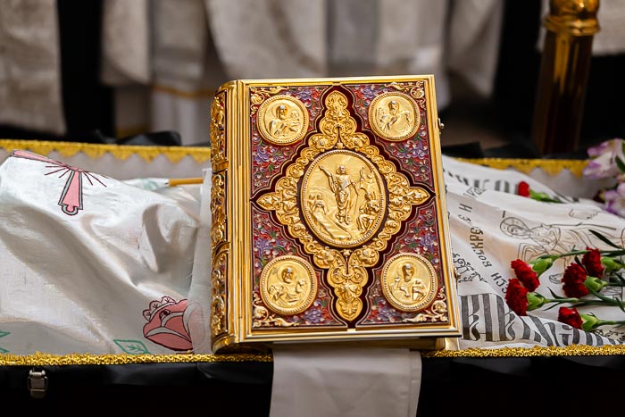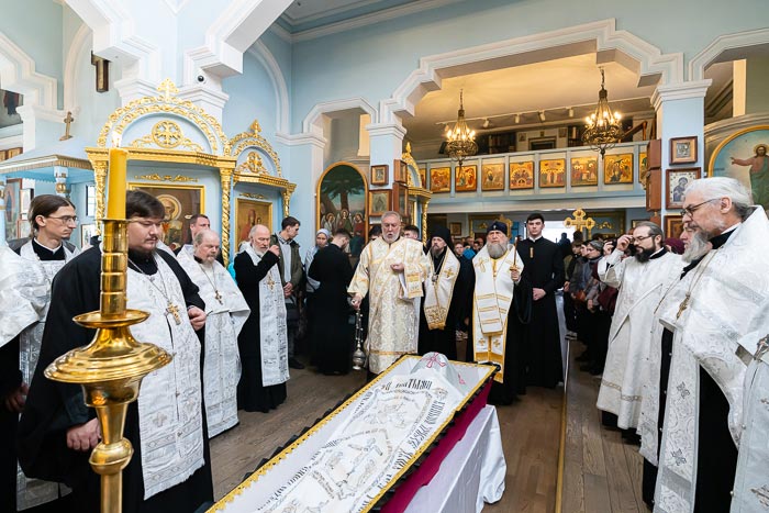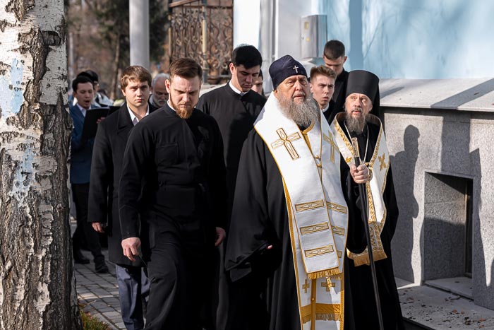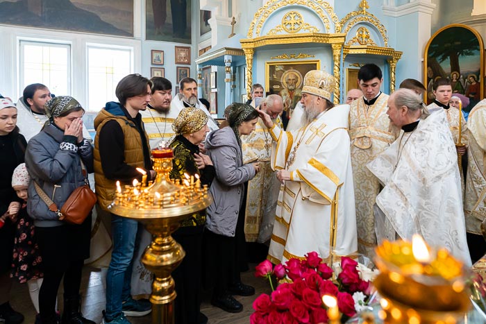 После великого славословия Его Высокопреосвященство прочитал разрешительную молитву. Под пение стихир «Приидите последнее целование дадим, братие, умершему...», иерархи, духовенство и миряне прощались с почившим пастырем.
