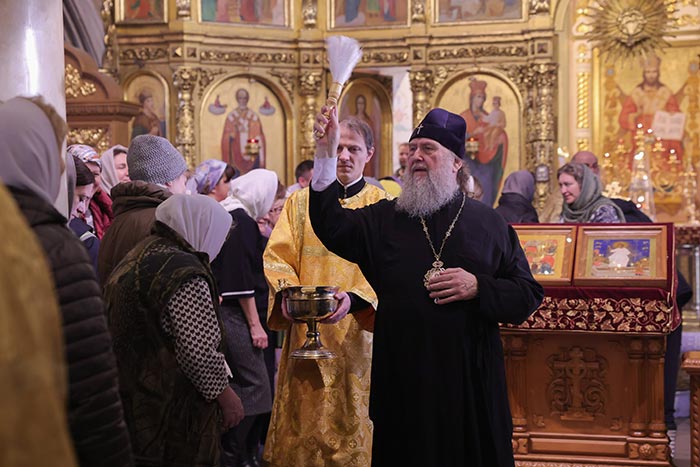 Глава Митрополичьего округа поздравил верующих с воскресным днем – «Малой Пасхой» и обратился к собравшимся со словом о значении мученического подвига, после чего поздравил именинниц с днем ангела и преподал прихожанам архипастырское благословение.