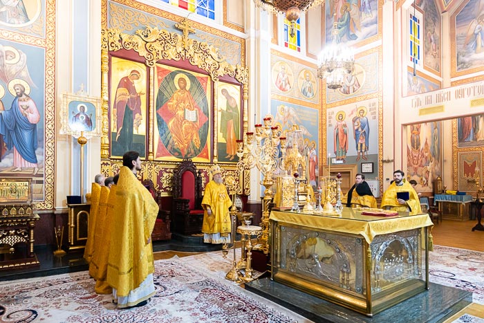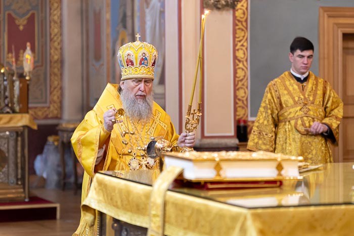 Митрополит Астанайский и Казахстанский Александр совершил Божественную Литургию в Вознесенском кафедральном соборе города Алма-Аты.