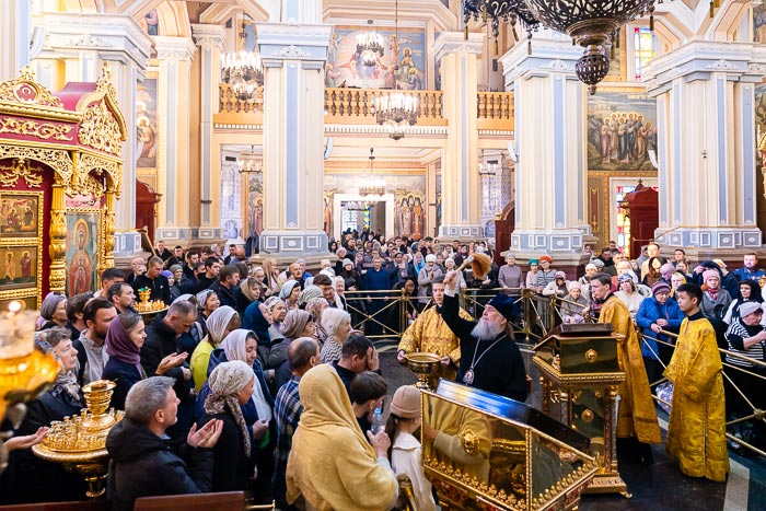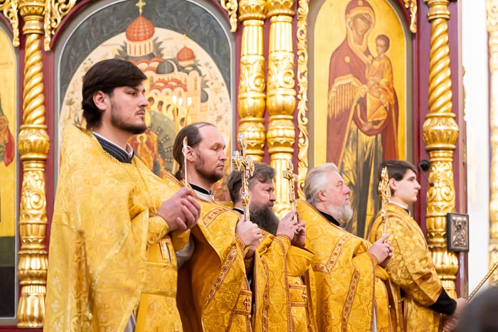 Песнопения исполняли хор Митрополичьего округа (регент – Заслуженный деятель искусств России О.Н. Овчинников, хормейстер – В. Дударева) и хор Вознесенского собора (регент – Е. Богуславец).