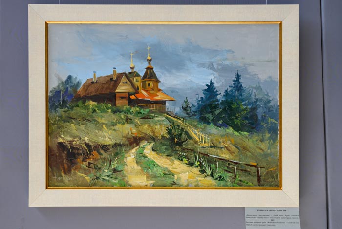 На выставке представлены 20 живописных полотен известных и начинающих казахстанских художников, выполненных на пленэре – в Аксайском скиту в день празднования памяти святых Серафима и Феогноста, 11 августа этого года.