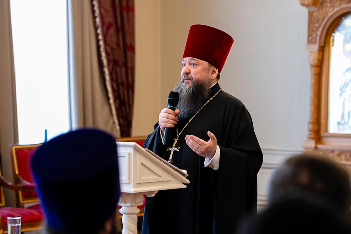 Далее отец ректор представил вниманию слушателей доклад на тему: «Положение православного духовенства и мирян в Казахской ССР в 1943-1958 гг.».