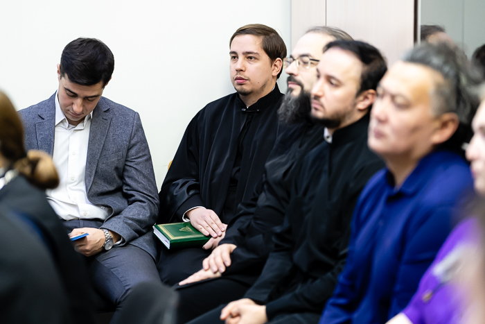 Участниками собрания стали: ректор Алма-Атинской православной духовной семинарии, кандидат богословия протоиерей Евгений Иванов; проректор по воспитательной работе иерей Иоанн Ливинский, проректор по учебной работе иерей Петр Бахтияров, проректор по научной работе, кандидат философских наук А.П. Соловьев, заведующий библейско-богословской кафедрой, кандидат богословия иерей Олег Лисин; заведующий церковно-исторической кафедрой протоиерей Александр Гайченя, заведующий церковно-практической кафедрой духовной школы, кандидат богословия диакон Владислав Пашков; секретарь церковно-практической кафедры иеромонах Прохор (Ендовицкий), научный сотрудник, преподаватель Алма-Атинской духовной семинарии протоиерей Александр Суворов; инспектор Алма-Атинской духовной семинарии иерей Евгений Бессонов, заведующий канцелярией духовной школы иерей Александр Шишлов, заведующий заочным отделением иерей Даниил Бобылев, заведующая регентским отделением АПДС В.В. Дударева, заведующий канцелярией духовной школы иерей Александр Шишлов, секретарь церковно-исторической кафедры иерей Георгий Сидоров, руководитель службы протокола митрополита протодиакон Роман Головин, члены преподавательской корпорации духовной школы.