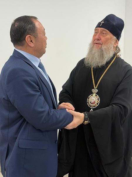 13 ноября 2025 года. Алма-Ата. В городском акимате состоялась встреча Главы Православной Церкви Казахстана митрополита Астанайского и Казахстанского Александра с новоназначенным заместителем акима Южной столицы Нукеновым Абзалом Нукеновичем.
