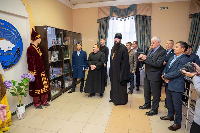 Участники встречи посетили кабинеты этнокультурных объединений региона при КГУ «Қоғамдық келісім», где ознакомились с национальной культурой народов Казахстана.