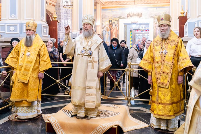 Песнопения праздничного богослужения исполняли хор Митрополичьего округа под управлением Заслуженного деятеля искусств России О.Н. Овчинникова и хор Вознесенского собора под управлением Н. Зубревич.