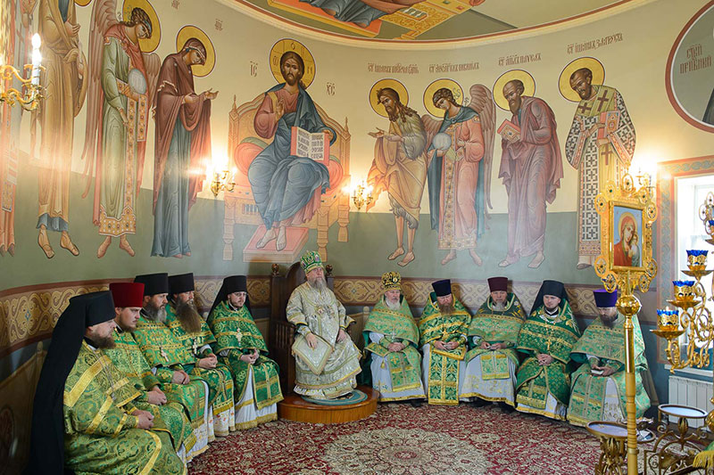 Его Высокопреосвященству сослужили: благочинный храмов Алма-Аты, настоятель Никольского собора протоиерей Валерий Захаров; настоятель храма в честь иконы Божией Матери «Всех скорбящих Радость» протоиерей Евгений Воробьев; референт Алма-Атинского епархиального управления архимандрит Феодосий (Иванов); настоятель Крестовоздвиженского храма иеромонах Мелитон (Поротиков); настоятель Благовещенского храма иеромонах Клавдиан (Поляков); настоятель Алексеевской церкви поселка Байтерек протоиерей Анатолий Бойко; настоятель Иоанно-Предтеченского храма поселка Гульдала протоиерей Георгий Харлов; руководитель личного секретариата митрополита иеромонах Прохор (Ендовицкий); настоятель Александро-Невской церкви села Саймасай (бывш. Александровка) иерей Роман Клюев; протодиакон Николай Гринкевич, руководитель службы протокола митрополита протодиакон Роман Головин, протодиакон Владимир Сыровацкий, диакон Димитрий Савченко; духовенство храмов Алма-Аты.