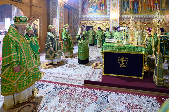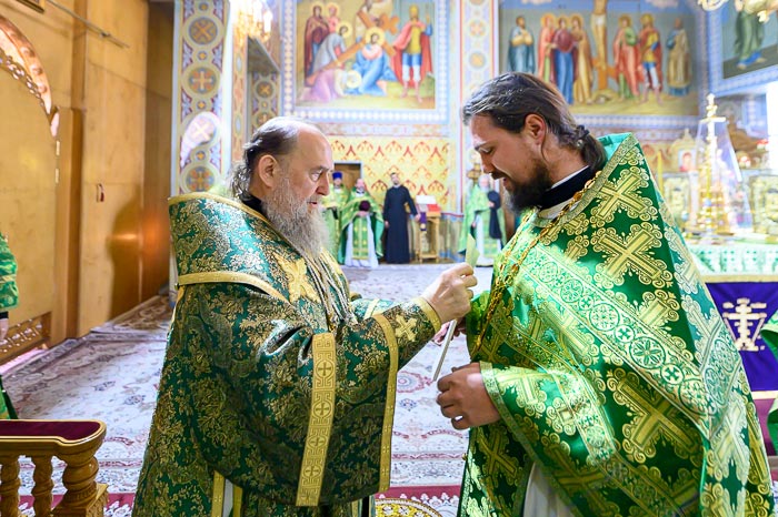 Главе Православной Церкви Казахстана сослужили: викарии Астанайской епархии – управляющий делами Казахстанского Митрополичьего округа епископ Каскеленский Геннадий, епископ Талдыкорганский Клавдиан и епископ Талгарский Вениамин; благочинный храмов Южной столицы, настоятель Никольского собора протоиерей Валерий Захаров; настоятель храма в честь иконы Божией Матери «Всех скорбящих Радость» протоиерей Евгений Воробьев; руководитель отдела по связям с общественностью Митрополичьего округа, ключарь Вознесенского кафедрального собора протоиерей Александр Суворов; и.о. ректора Алма-Атинской духовной семинарии, руководитель информационного отдела Митрополичьего округа протоиерей Евгений Иванов; благочинный Илийского церковного округа протоиерей Александр Зырянов; ключарь Константино-Еленинского собора города Астаны протоиерей Сергий Калиев; ключарь Христорождественского собора протоиерей Александр Гайченя; настоятели и духовенство храмов Алма-Атинской епархии; представители администрации и преподаватели духовной семинарии в священном сане, священнослужители – сотрудники Алма-Атинского епархиального управления. Диаконский чин возглавил протодиакон Николай Гринкевич.