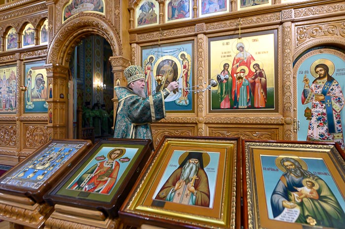Литургия завершилась славлением преподобноисповеднику Севастиану Карагандинскому перед ковчегом с его честными мощами.