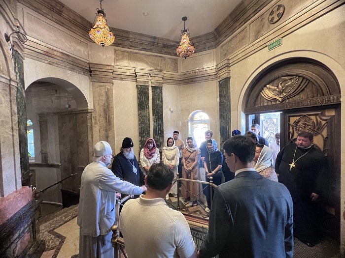 После знакомства с музеем и поклонения святыням храма митрополит Александр поблагодарил протоиерея Феодора Повного за подробный рассказ о создании храма-памятника и содержательную экскурсию и передал в библиотеку прихода книги, изданные в Казахстанском Митрополичьего округа.