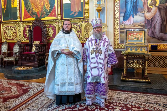 После херувимской песни митрополит Александр совершил священническую хиротонию клирика домового храма митрополичьей резиденции диакона Андрея Ивашинина.