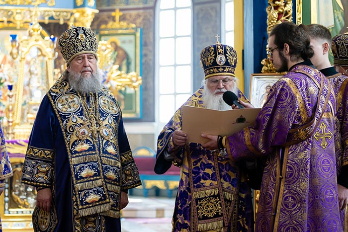 Постоянным членам Священного Синода Русской Православной Церкви сослужили: гости-архипастыри – митрополит Казанский и Татарстанский Кирилл, митрополит Сингапурский и Юго-Восточно-Азиатский Сергий, митрополит Ханты-Мансийский и Сургутский Павел, митрополит Костромской и Нерехтский Ферапонт, митрополит Екатеринбургский и Верхотурский Евгений, архиепископ Элистинский и Калмыцкий Юстиниан, епископ Галичский и Макарьевский Алексий, епископ Бердянский и Приморский Федор; казахстанский епископат – архиепископ Павлодарский и Экибастузский Варнава, архиепископ Карагандинский и Шахтинский Севастиан, архиепископ Усть-Каменогорский и Семипалатинский Амфилохий, архиепископ Кокшетауский и Акмолинский Серапион, архиепископ Петропавловский и Булаевский Владимир, епископ Актюбинский и Кызылординский Игнатий, викарий Астанайской епархии епископ Талдыкорганский Клавдиан, епископ Чимкентский и Туркестанский Хрисанф, викарий Астанайской епархии епископ Талгарский Вениамин, епископ Уральский и Атырауский Вианор.