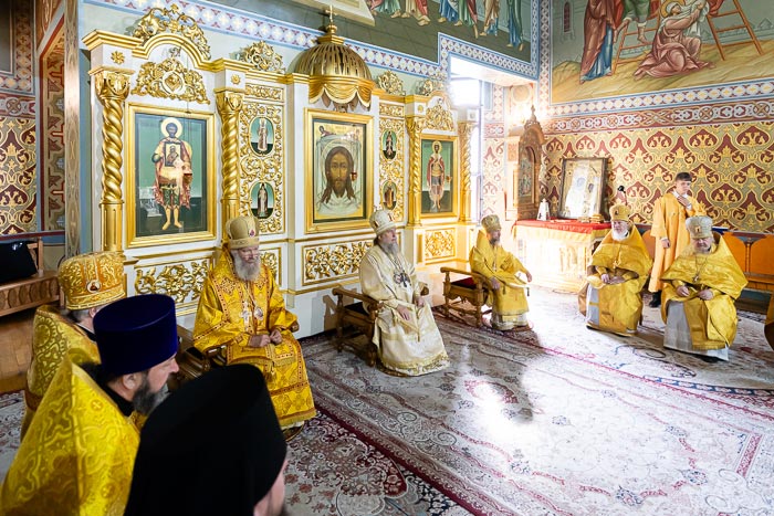 По запричастном стихе протоиерей Евгений Иванов огласил Обращение митрополита Астанайского и Казахстанского Александра по случаю принесения в Казахстан мощей блаженной Матроны Московской.