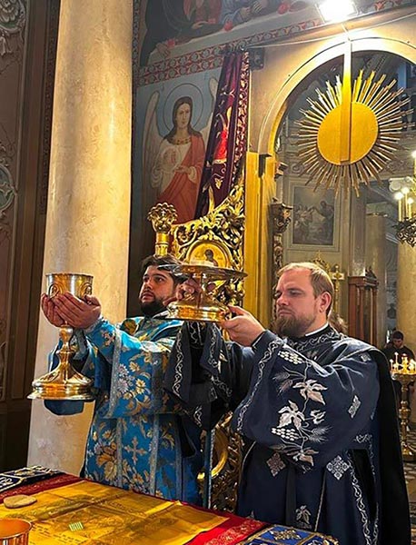 Архипастырю сослужили: и.о. ректора Алма-Атинской духовной семинарии, руководитель информационного отдела Митрополичьего округа протоиерей Евгений Иванов; ключарь храма святых мучениц Веры, Надежды, Любови и матери их Софии иеромонах Антоний (Дробязко); кандидат богословия, доктор медицинских наук, профессор игумен Агафангел (Гагуа); иеромонах Даниил (Макагон); протодиакон Сергий Куликов, диакон Анатолий Леденев и диакон Роман Фролов.