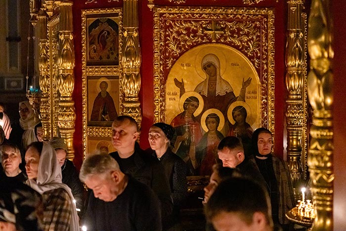 Песнопения повечерия исполняли: хор Митрополичьего округа под управлением Заслуженного деятеля искусств России О.Н. Овчинникова и хор Вознесенского собора под управлением Е. Богуславец.