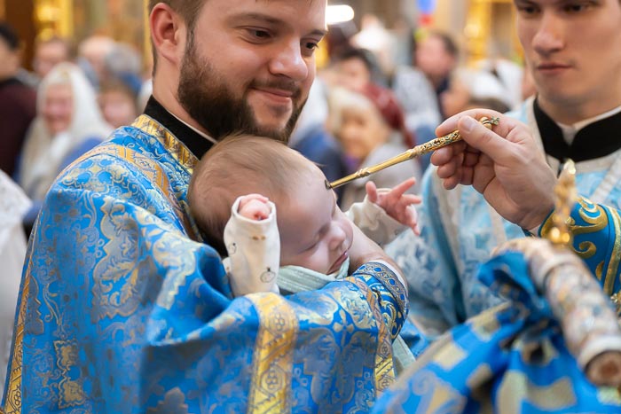 Во время пения канона Рождеству Пресвятой Богородице верующие были помазаны освященным елеем.