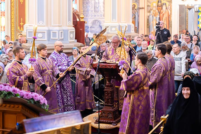 Митрополит Александр произнес слова благодарности за благопожелания и испросил у присутствующих в храме сугубых молитв о ниспослании благодатной помощи Божией в служении Церкви Христовой, после чего поздравил духовенство и верующих с праздником Воздвижения и произнес проповедь.