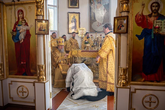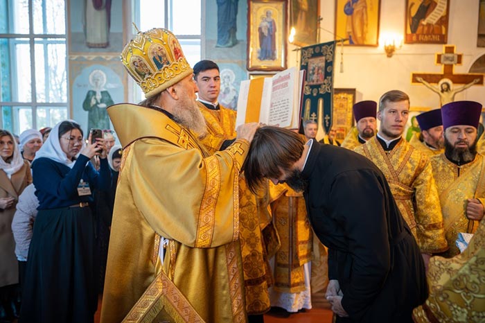 После евхаристического канона митрополит Александр совершил диаконскую хиротонию студента Алма-Атинской духовной семинарии чтеца Алексия Федорченко.