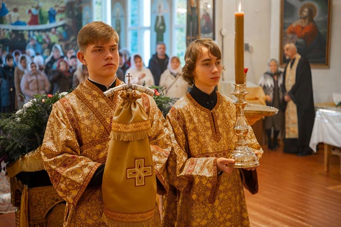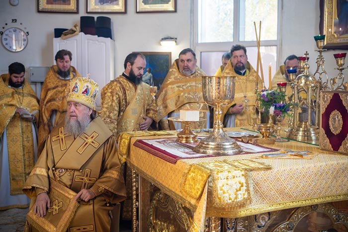 Архипастырю сослужили: секретарь Костанайской епархии иеромонах Геннадий (Бурдюжа); благочинный Костанайского церковного округа, настоятель Казанского храма иерей Андрей Крутин; благочинный Лисаковского церковного округа, настоятель храма во имя святого праведного Иоанна Кронштадтского города Лисаковск протоиерей Олег Калмыков; благочинный Сарыкольского церковного округа протоиерей Виталий Клеба; настоятель Всесвятской церкви поселка Сарыколь Максим (Бойков); ключарь Никольского храма города Костаная протоиерей Виталий Гуцан; настоятель Никольской церкви поселка Федоровка протоиерей Алексий Мостовщиков; руководитель личного секретариата митрополита иеромонах Прохор (Ендовицкий); руководитель службы протокола протодиакон Роман Головин; протодиакон Владимир Сыровацкий; протодиакон Александр Мокий; духовенство храмов Алма-Атинской и Костанайской епархий.