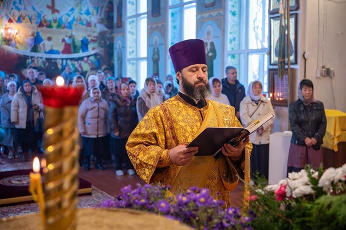 По запричастном стихе протоиерей Виталий Клеба огласил послание митрополита Астанайского и Казахстанского Александра по случаю 15-летия Костанайской епархии.