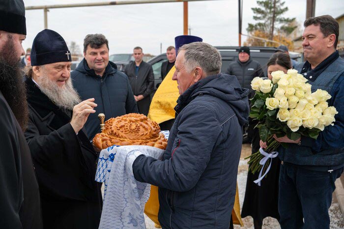 11 октября 2025 года. Район Беимбета Майлина, Костанайская область. В рамках празднования 15-летия учреждения Костанайской епархии Глава Православной Церкви Казахстана митрополит Астанайский и Казахстанский Александр совершил чин малого освящения храма в честь Покрова Пресвятой Богородицы в селе Асенкритовка.