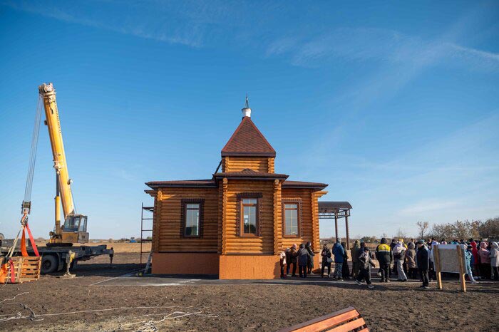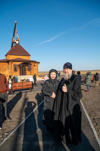 Митрополит Астанайский и Казахстанский Александр совершил освящение креста и купола строящегося Никольского храма в селе Владимировка