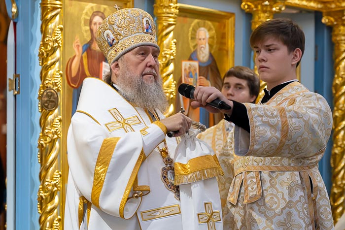 Главе Митрополичьего округа сослужили: викарии Астанайской епархии – управляющий делами Казахстанского Митрополичьего округа епископ Каскеленский Геннадий и епископ Талгарский Вениамин; благочинный приходов Южной столицы, настоятель Никольского собора протоиерей Валерий Захаров; настоятель алма-атинского храма в честь иконы Божией Матери «Всех скорбящих Радость» митрофорный протоиерей Евгений Воробьев; духовник Алма-Атинской епархии архимандрит Иоанн (Сазонов); настоятели и духовенство храмов Южной столицы.