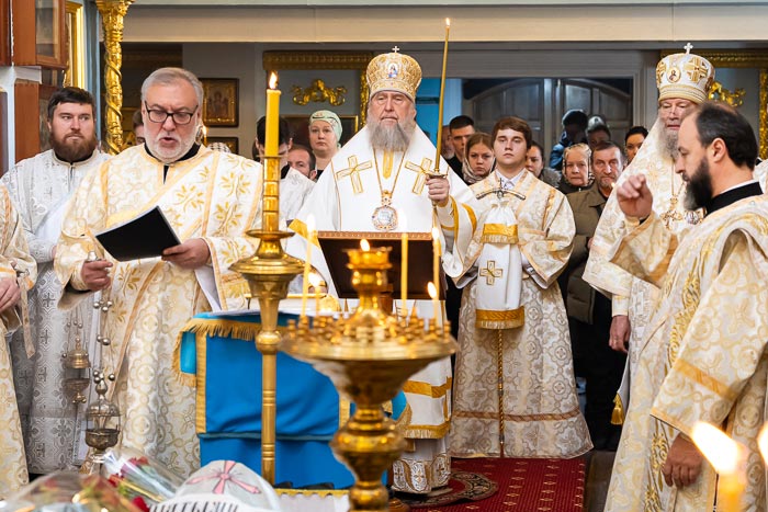 После великого славословия Его Высокопреосвященство прочитал разрешительную молитву. Под пение стихир «Приидите последнее целование дадим, братие, умершему...», иерархи, духовенство и миряне прощались с почившим пастырем.