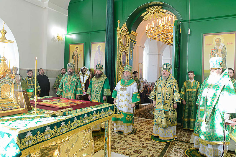 За богослужением великого освящения и Божественной Литургией Предстоятелю Православной Церкви Казахстана сослужили: викарий Астанайской епархии епископ Талдыкорганский Нектарий, епископ Карагандинский и Шахтинский Севастиан, епископ Кокшетауский и Акмолинский Серапион, епископ Петропавловский и Булаевский Владимир; духовник Богородице-Рождественского монастыря архимандрит Петр (Горошко); настоятель Введенского кафедрального собора архимандрит Анатолий (Киселев); секретарь епархиального управления протоиерей Владимир Фрейганг; благочинный Карагандинского церковного округа протоиерей Александр Угольков; руководитель отдела Казахстанского Митрополичьего округа по связям с общественностью, ключарь Вознесенского кафедрального собора Алма-Аты протоиерей Александр Суворов; руководитель отдела по связям с общественностью Карагандинской епархии протоиерей Михаил Патрикеев; ключарь Успенского кафедрального собора Астаны протоиерей Димитрий Байдек; ключарь Петропавловского храма Алма-Аты протоиерей Кирилл Шкляр; руководитель личного секретариата митрополита иеромонах Прохор (Ендовицкий); помощник Главы Митрополичьего округа иерей Георгий Сидоров; протодиакон Николай Гринкевич, руководитель службы протокола митрополита протодиакон Роман Головин, духовенство Карагандинской епархии.