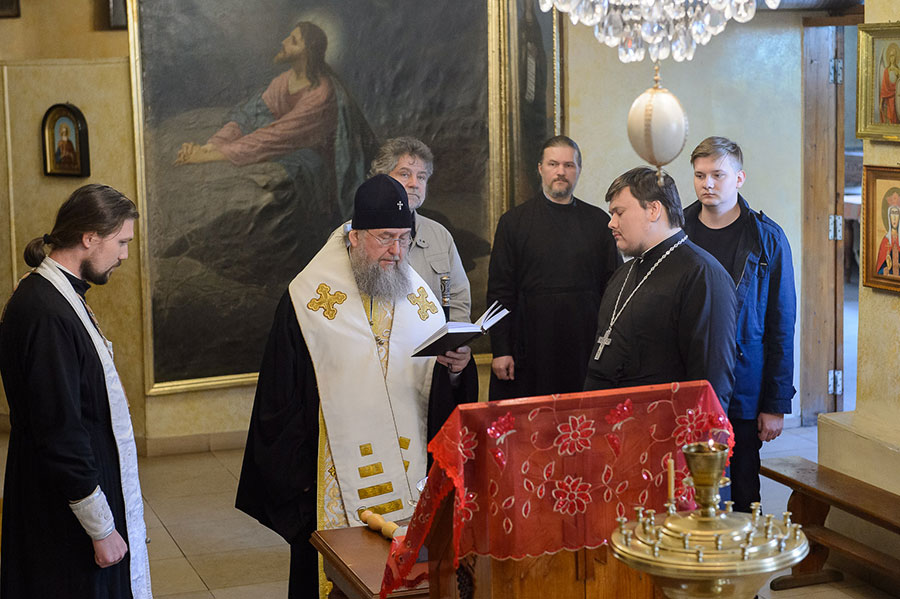 После освящения иконостаса митрополит Александр поклонился плащанице Спасителя, установленной в верхнем храме, и совершил молитву перед святынями собора – ковчегами с частицами мощей святителя и чудотворца Николая, архиепископа Мир Ликийских, великомученика и целителя Пантелеимона, великомученицы Варвары и ракой с мощами священноисповедника Николая, митрополита Алма-Атинского.