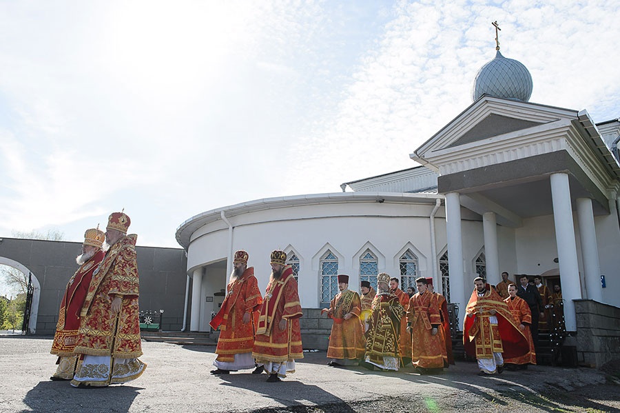 По отпусте Литургии духовенство, хор и верующие пропели стихиры святой Пасхи и молитвенно прославили Божию Матерь.