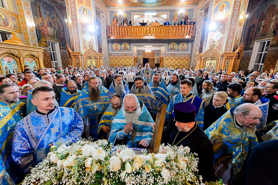 11 октября 2019 года. Алма-Ата. По окончании ночной Божественной Литургии в Софийском соборе Иверско-Серафимовского монастыря состоялся молебен, который завершил собой поклонение чудотворной Курской-Коренной иконе Пресвятой Богородицы «Знамение».