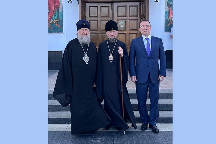 На сугубой ектении возглашались прошения о единстве Святого Православия. Глава Митрополичьего округа вознес молитву о мире и преодолении междоусобной брани на Украине.