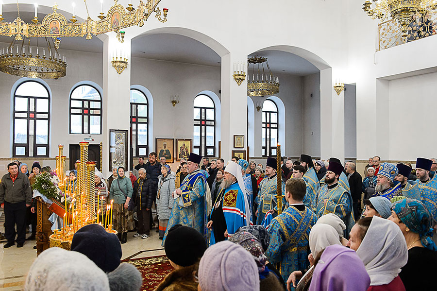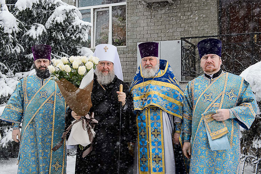 В завершение Литургии состоялось славление празднику Сретения Господня, после чего митрополит Александр поздравил отца настоятеля, духовенство и прихожан с воскресным днем и продолжением празднования Сретения Господня и произнес проповедь.