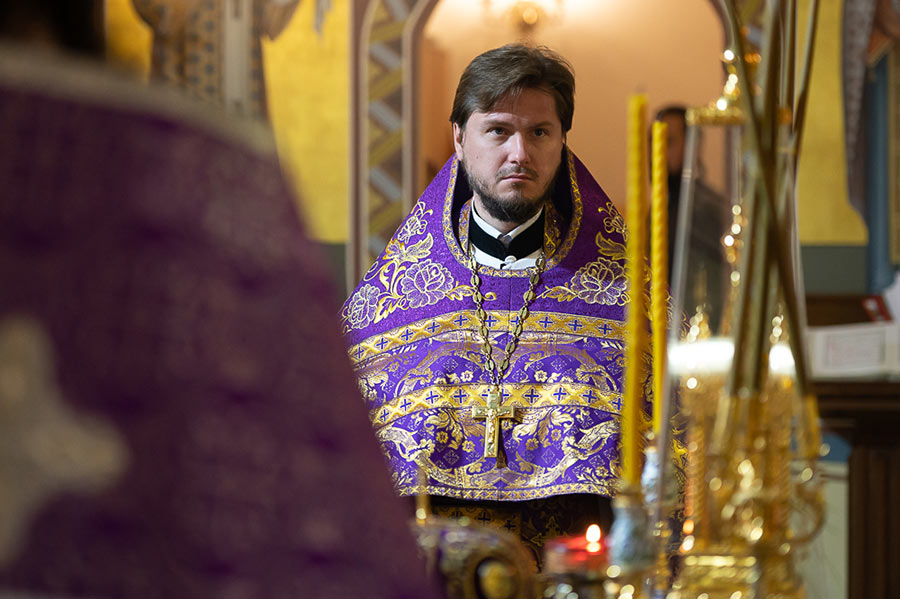 Проповедь по запричастном стихе произнес ключарь Софийского храма обители протоиерей Александр Соколов.