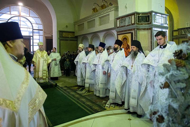 По запричастном стихе иерей Георгий Сидоров огласил Рождественское послание митрополита Астанайского и Казахстанского Александра.