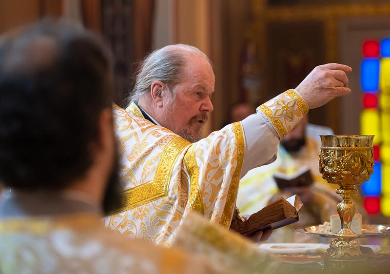 После входа с Евангелием были прочитаны паремии праздника Богоявления – ветхозаветные пророчества о Крещении Спасителя с особыми припевами, попеременно исполняемыми духовенством и хором: «Человеколюбче, слава Тебе» и «Токмо на седящия во тьме, слава Тебе».