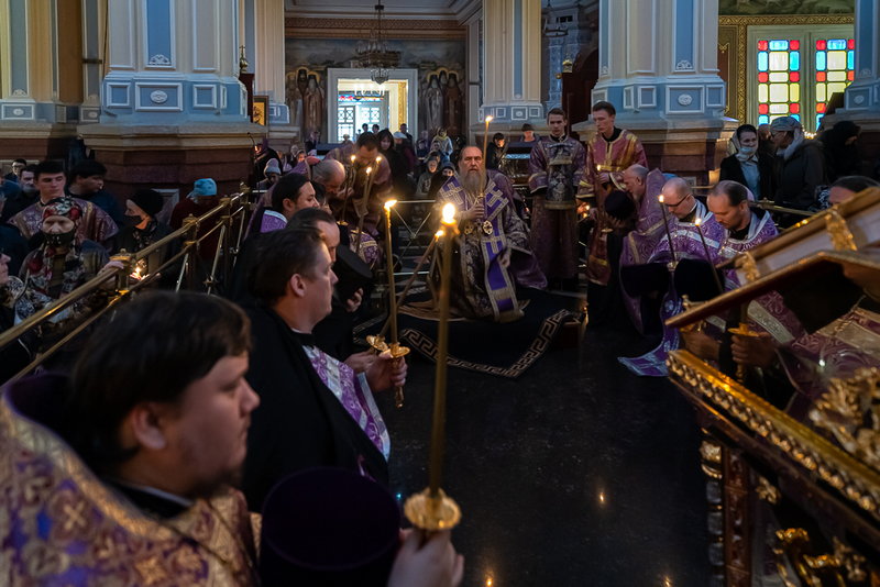 В соответствие с богослужебным Уставом на утрени по прочтении воскресного евангельского зачала хор исполнил великопостные тропари: «Покаяния отверзи ми двери, Жизнодавче», после чего митрополит Александр обратился к верующим с архипастырской проповедью.