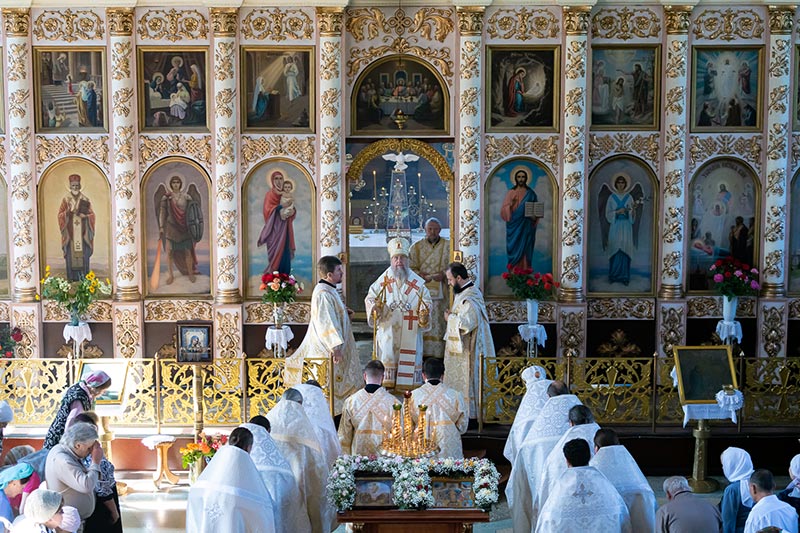 Митрополит Астанайский и Казахстанский Александр совершил Божественную Литургию в Успенском соборе города Тараза.