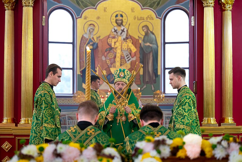 Перед началом богослужения в храм был доставлен ковчег с мощами Оптинских старцев, хранящийся в домовой Иверско-Серафимовской церкви митрополичьей резиденции в Алма-Ате.